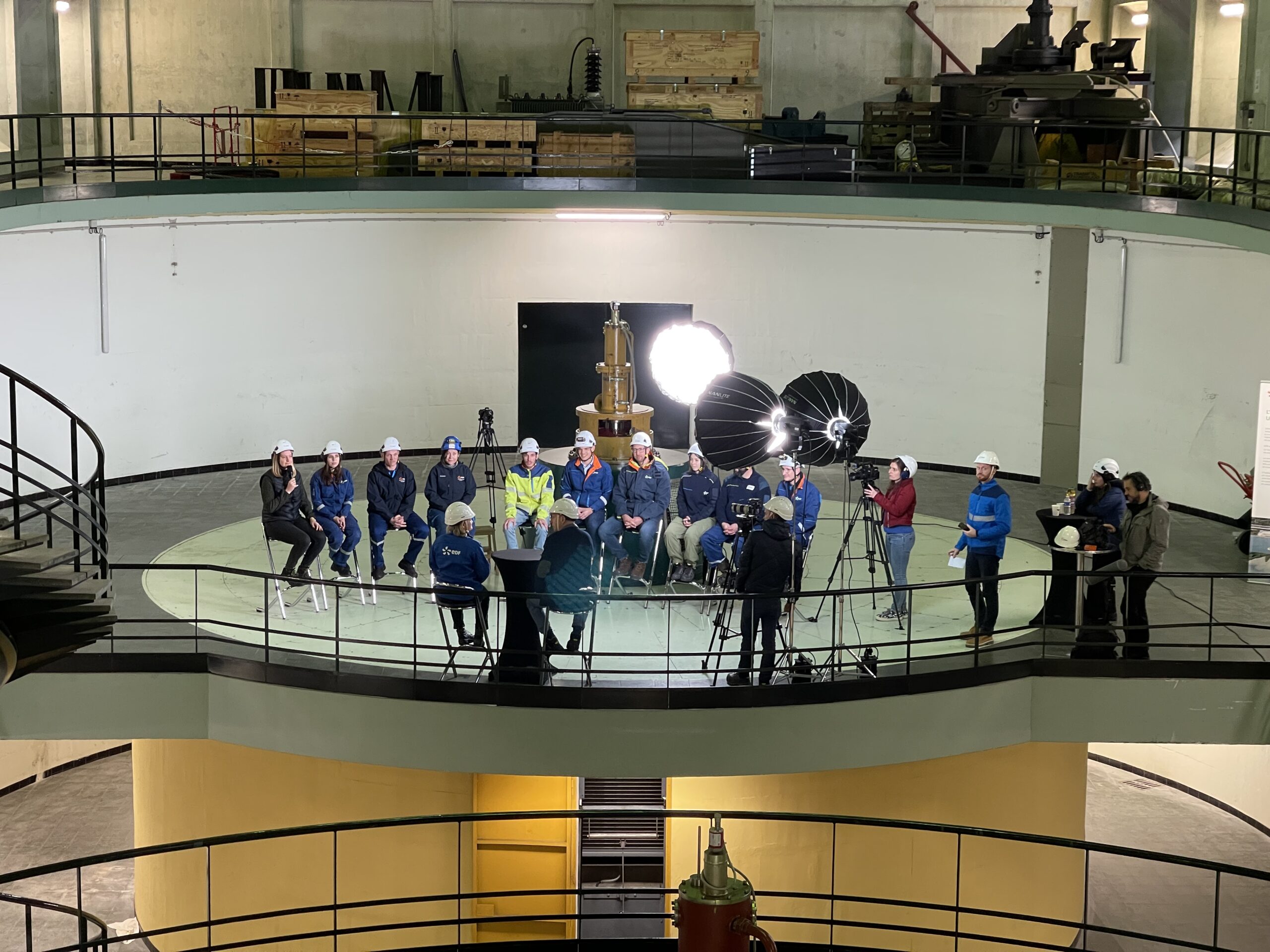 Conçue comme un plateau télé sur le site même du barrage, la vidéo capte des échanges en format court, directs et engageants. Les discours sont soutenus par des incrustations graphiques, des images des territoires et des équipes, et un habillage sonore sobre, pour créer du lien et une relation de proximité avec l’ensemble des salariés EDF Hydro France.