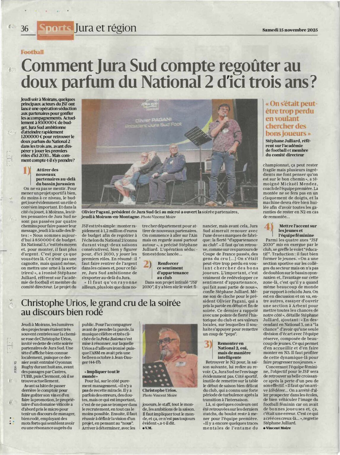 C’est dans cette dynamique qu’a été repensée l’offre du club partenaires avec de vrais temps forts d’animation. Au-delà, l’agence RSP a porté l’idée d’un club affaires, un réseau de dirigeants et d’entrepreneurs qui vise à fédérer les forces économiques locales et régionales autour d’une ambition commune : faire grandir le Jura à travers les valeurs du sport.