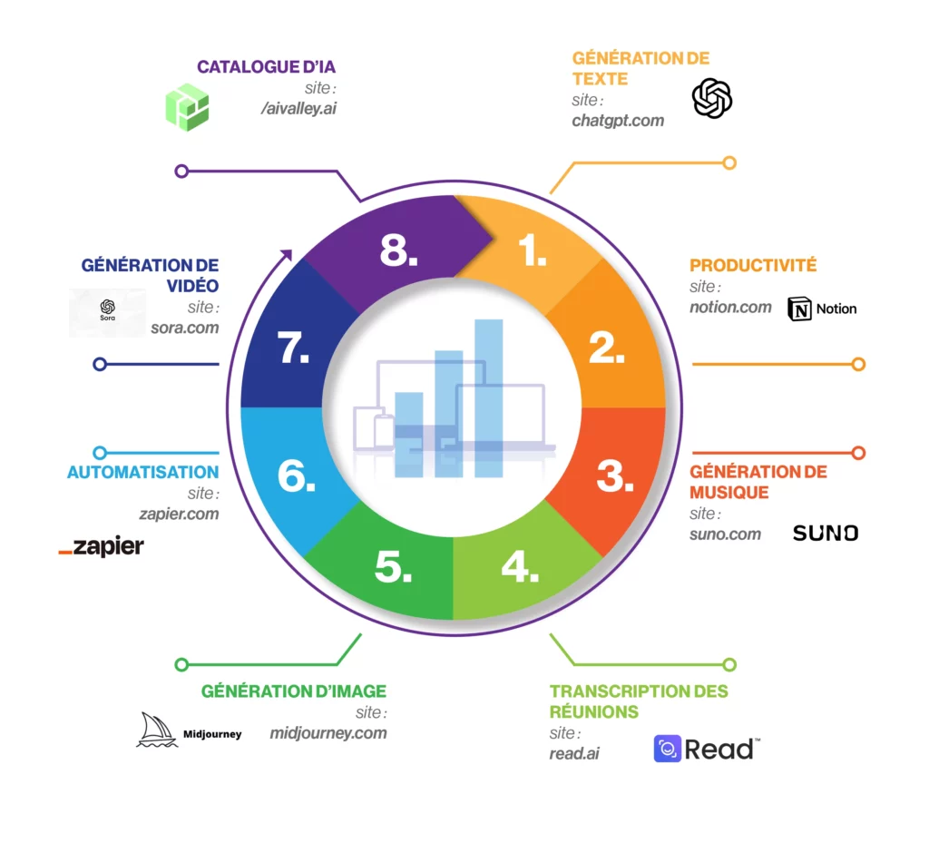 ChatGPT est une intelligence artificielle conversationnelle développée par OpenAI. Elle permet de générer du texte en langage naturel pour une grande variété d’usages : rédaction d’articles, réponses à des questions, brainstorming, rédaction de scripts, assistance à la programmation et bien plus encore. Cet outil est utilisé par de nombreuses entreprises et indépendants pour améliorer leur productivité et automatiser certaines tâches rédactionnelles.